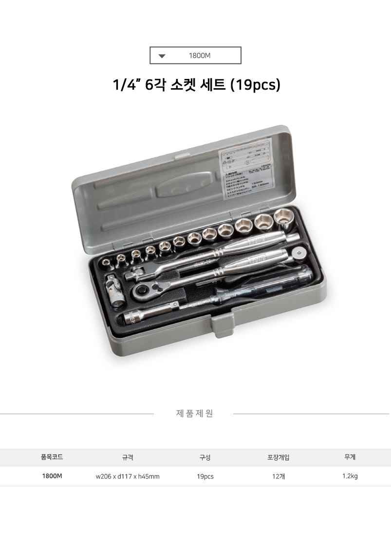 TONE 소켓렌치 1/4세트 1800M(19pcs) MM-6각 토네, 복스세트, 작업공구