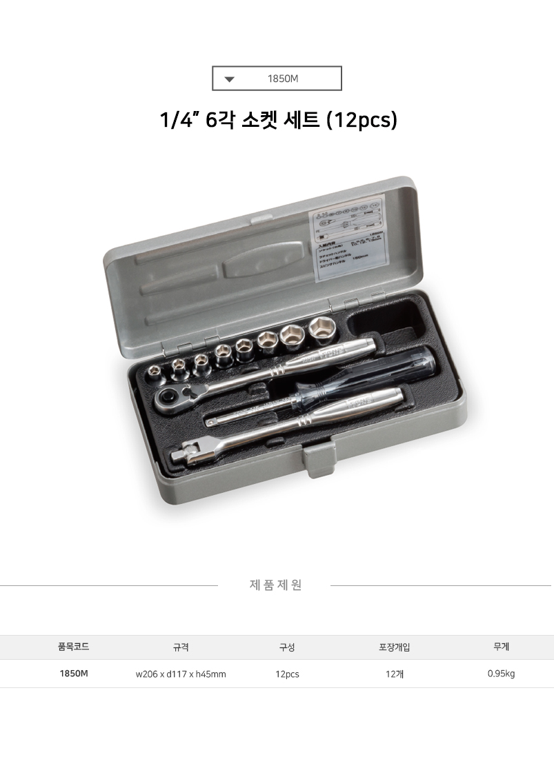 TONE 소켓렌치 1/4세트 1850M(12pcs) MM-6각 토네, 복스세트, 작업공구