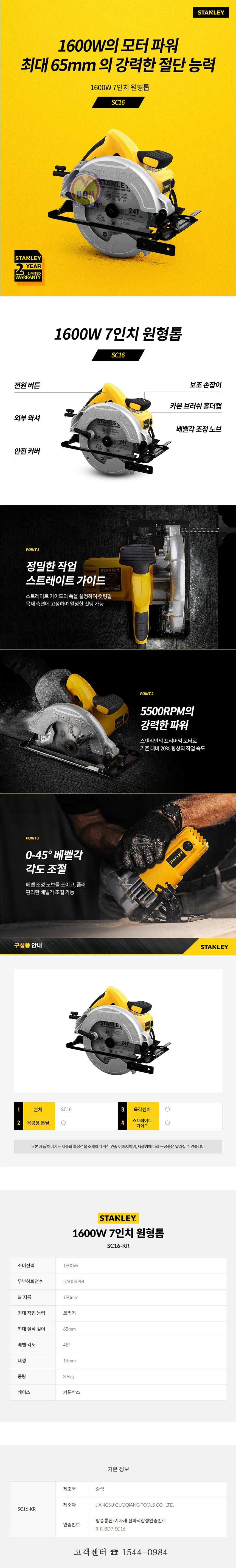 스탠리 원형톱(톱날포함) 1600W SC16-KR (220V,7inch) STANLEY, 전기톱, 목재절단기