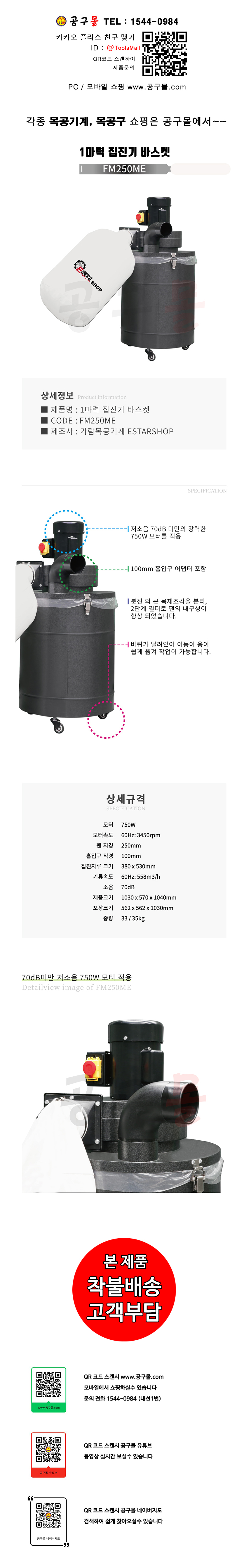 KR산업 이동식 집진기(바스켓) FM250ME 1마력, 33Kg, 목공용집진기, 목공기계