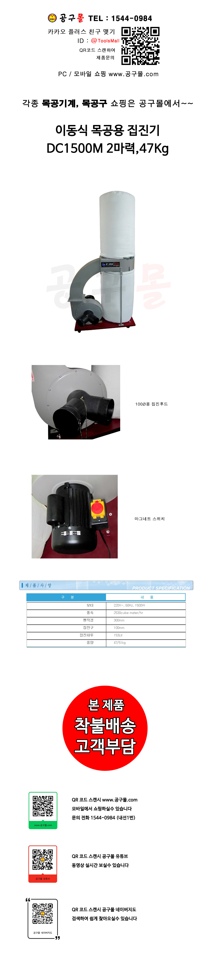 KR산업 이동식 목공용 집진기 DC1500M 2마력,47Kg, 목공기계