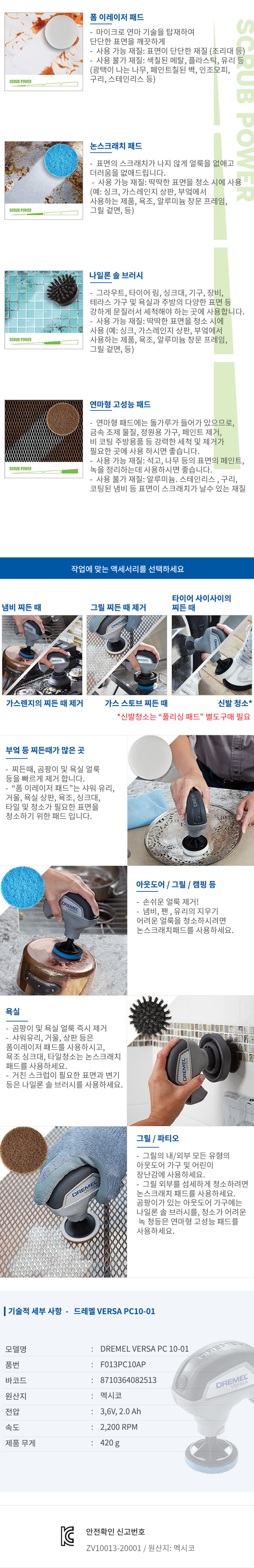 드레멜 VERSA PC10-01 (3.6V 2.0AH), 다용도공구, 다용도샌더, 다용도청소,F031PC10AP