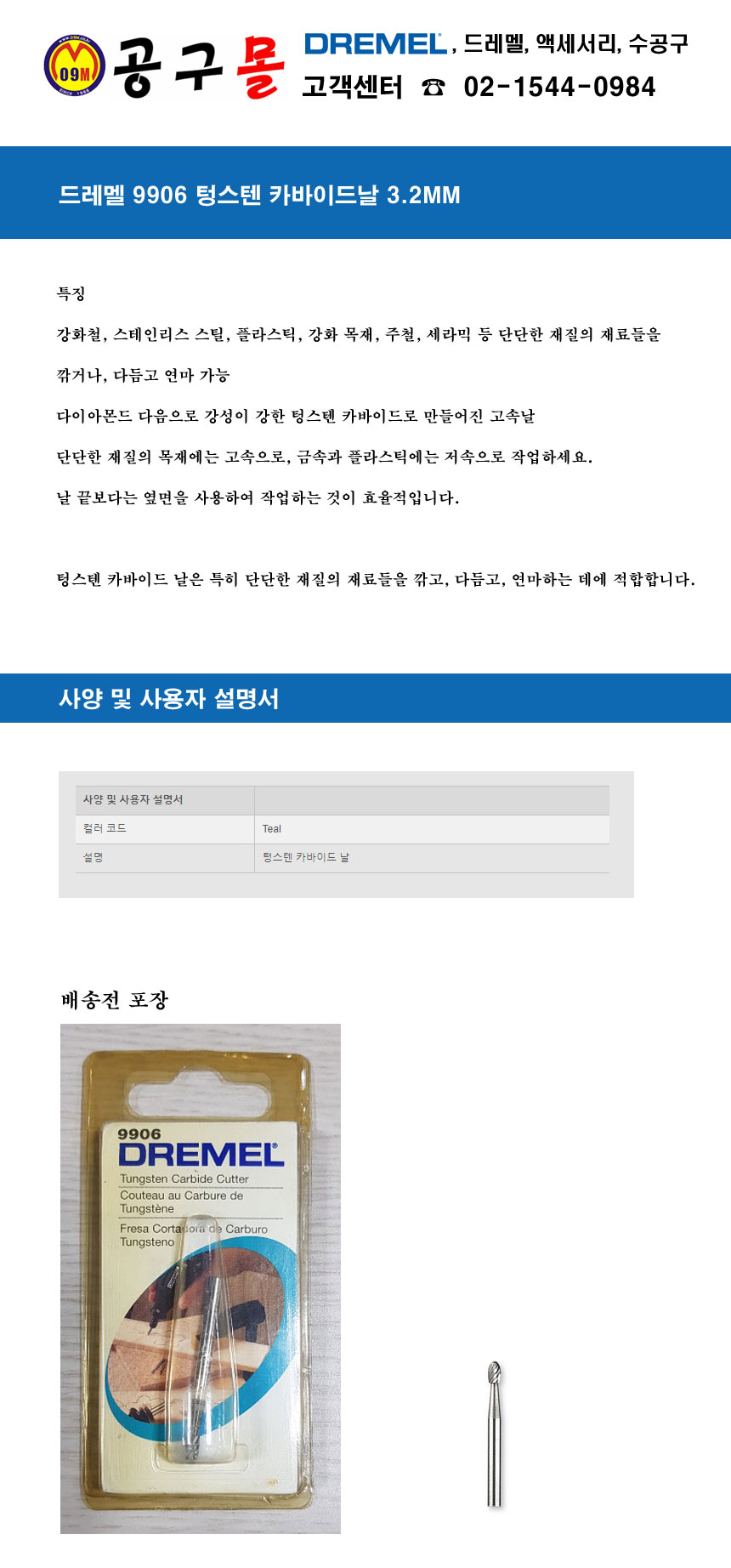 드레멜 9906 텅스텐 카바이드날 3.2MM, DREMEL,공구몰, 2615009906