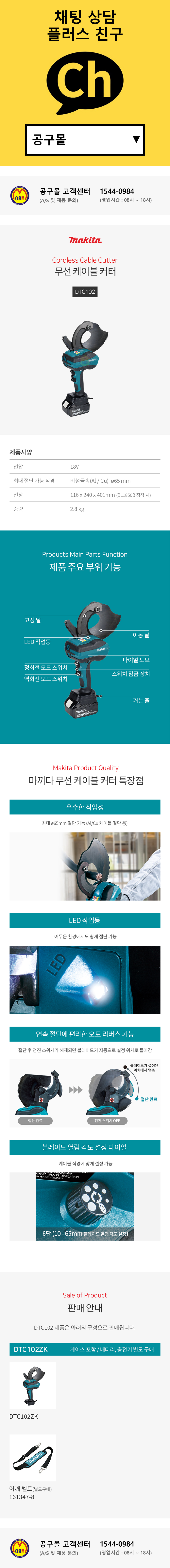 마끼다 18V 충전케이블커터 DTC102ZK (18V-베어툴) 무선케이블절단기