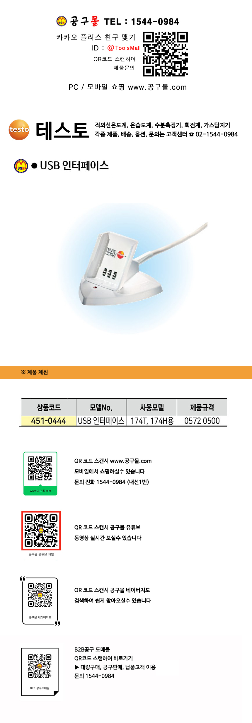 테스토 USB 인터페이스 174T, 174H용 (0572 0500) TESTO, 온도계, 습도계,451-0444