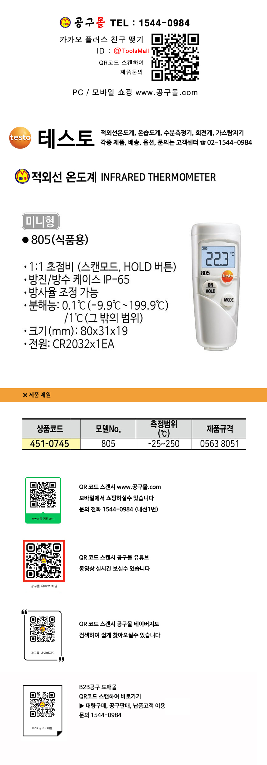 테스토 적외선온도계 805 (0563 8051) (-25-250도) TESTO, 온도계,451-0745