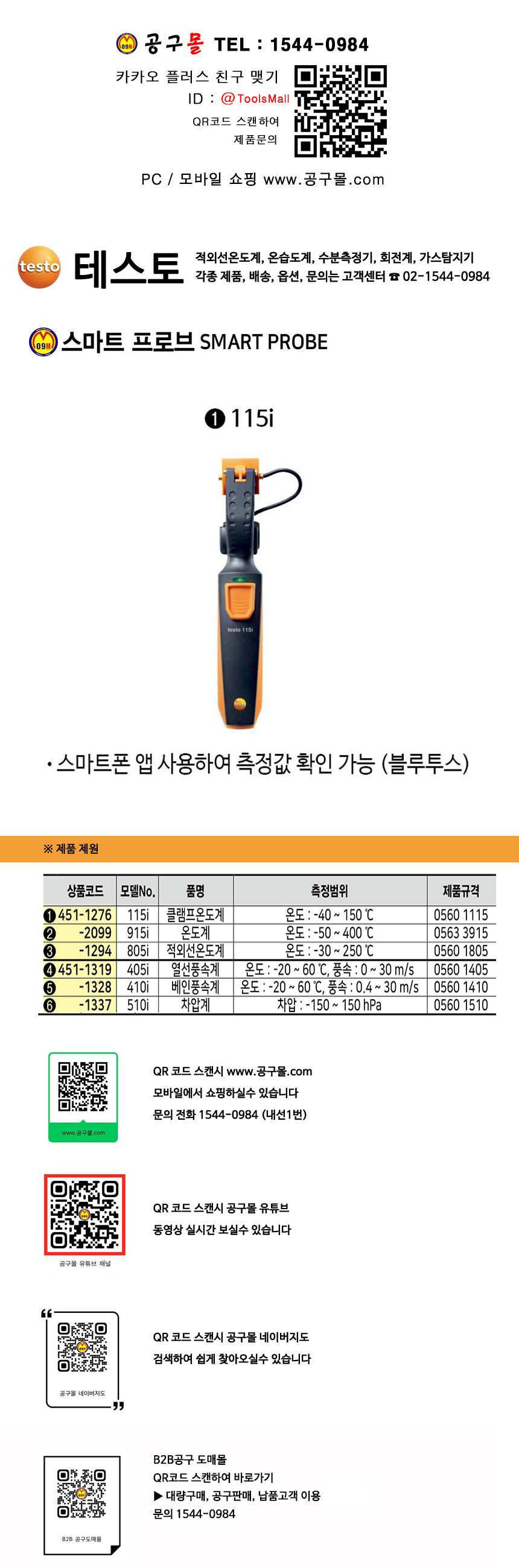 테스토 스마트 프로브 115i (클램프온도계) TESTO, 공구몰, 451-1276