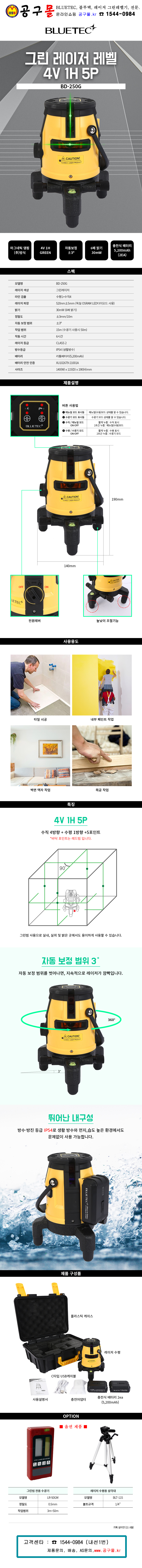 블루텍 레이저수평(그린) BD-250G BLUETEC, 그린레벨기, 406-4963