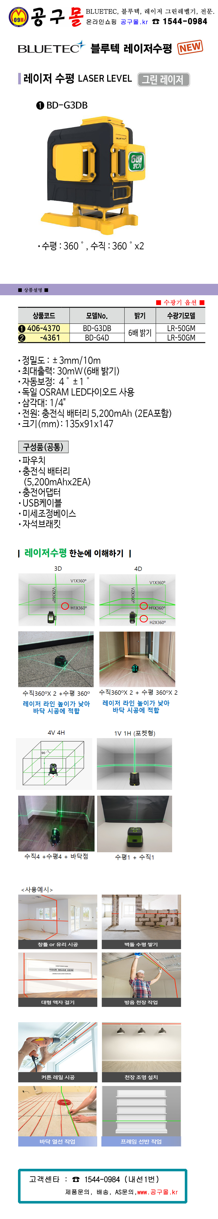 블루텍 레이저수평(그린) BD-G3DB BLUETEC, 그린레벨기, 406-4370