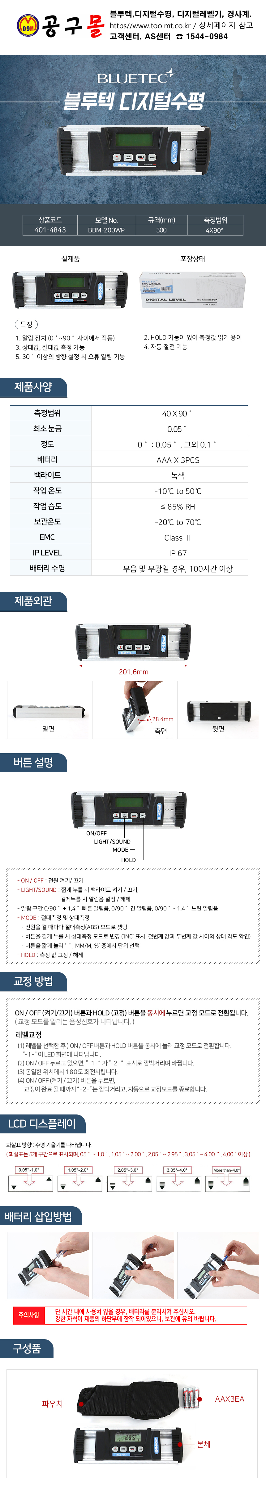 블루텍 디지털수평 BDM-200 (200mm) BLUETC, 레벨기, 4060134
