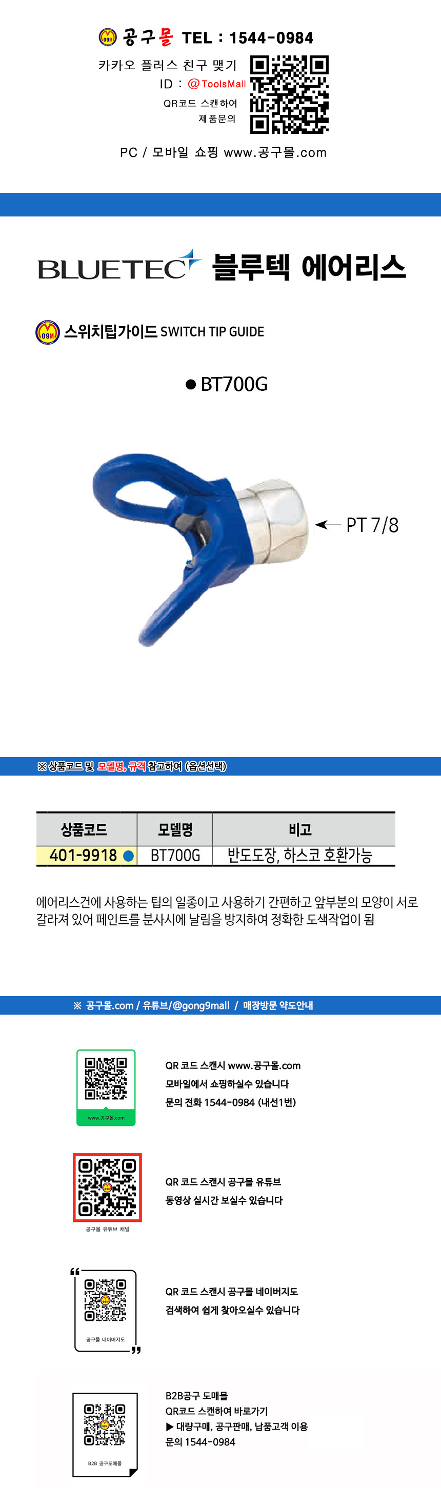 블루텍 스위치팁가이드 BT700G BLUETEC, 에어리스건용, 401-9918