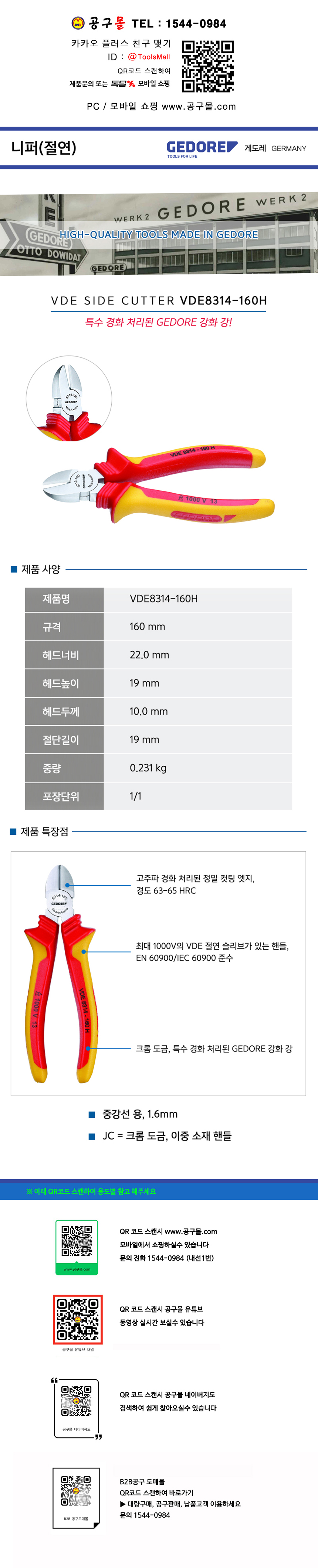 게도레 절연니퍼 VDE8314-160H (160mm) GEDORE 101001009046