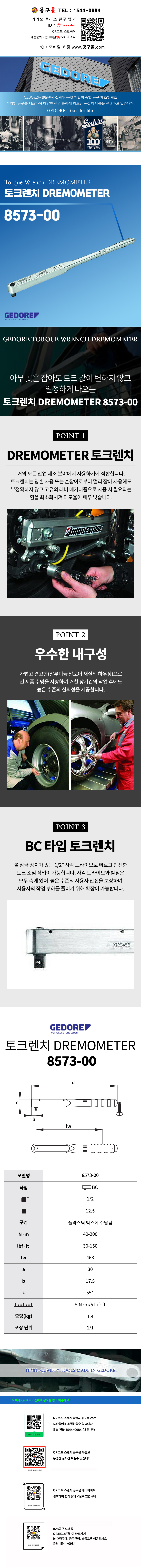 게도레 토크렌치 8573-00 (BC1/2 40-200 Nm) GEDORE 141402440226