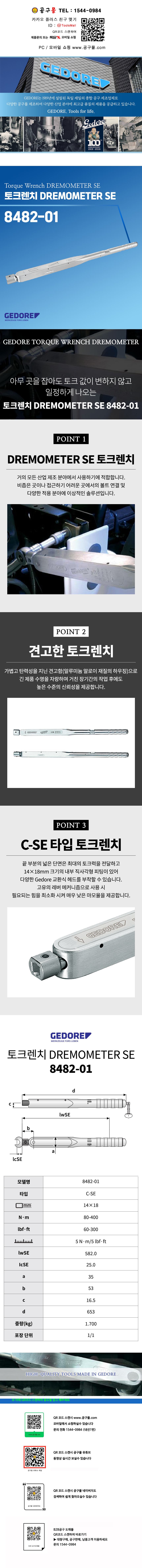 게도레 토크렌치 8482-01 (C-SE 14x18 80-400 N.m) GEDORE 141402449983
