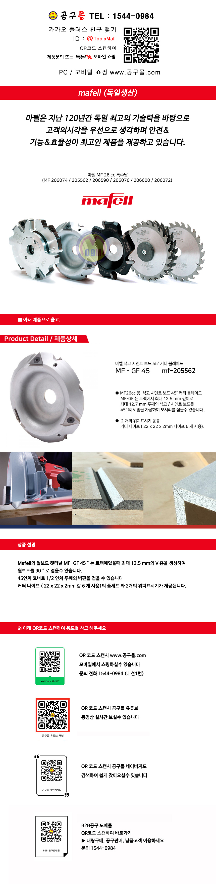 마펠 MF26cc용 월보드컷 MF-GF45도, MAFELL V홈을 생성 커터 블레이드, mf-205562