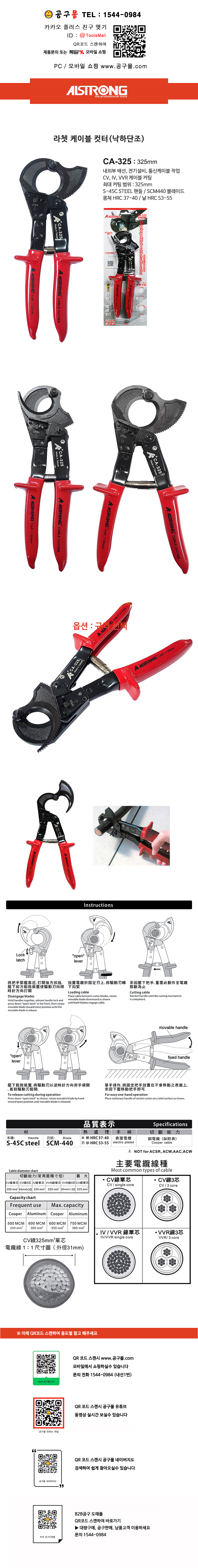 알스트롱 라쳇 케이블컷터(낙하단조) CA-325 (325mm) ALSTRONG, CA325
