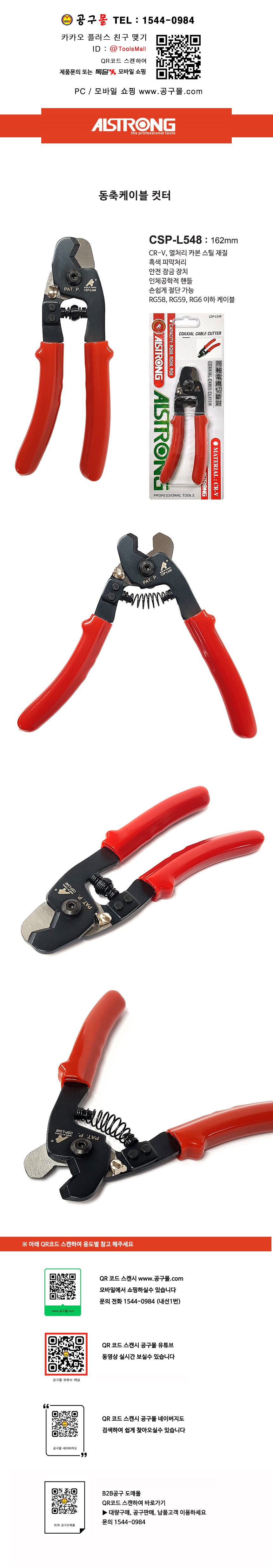 알스트롱 동축 케이블컷터 CSP-L548 (162mm) ALSTRONG,스테인리스 스틸 플라이어 CSPL548