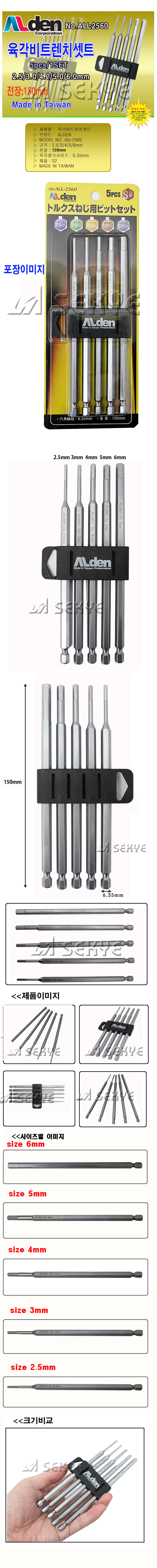알덴 육각비트렌치세트 AL2560 2.5-6x75mm(5PCS) ALDEN,1076-036