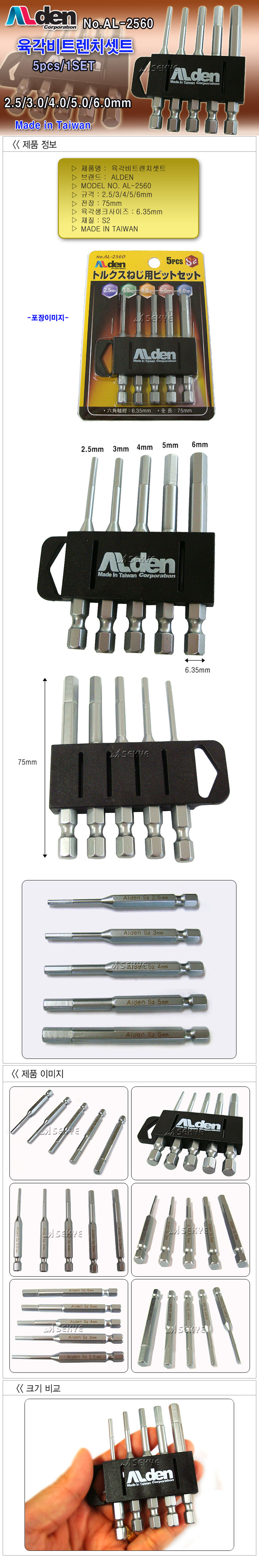 알덴 육각비트렌치세트 AL2560 2.5-6x75mm(5PCS) ALDEN,1076-036