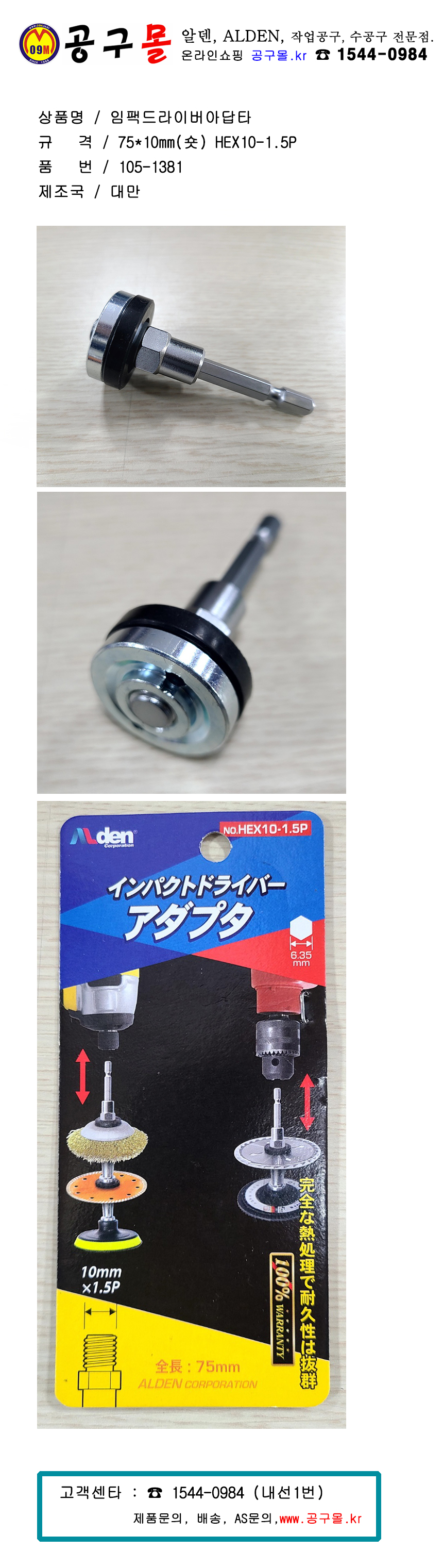 알덴 임팩드라이버아답타 HEX10-1.5P, 75x10mm(숏) ALDEN, 공구몰, 수공구, 작업공구,1051-138