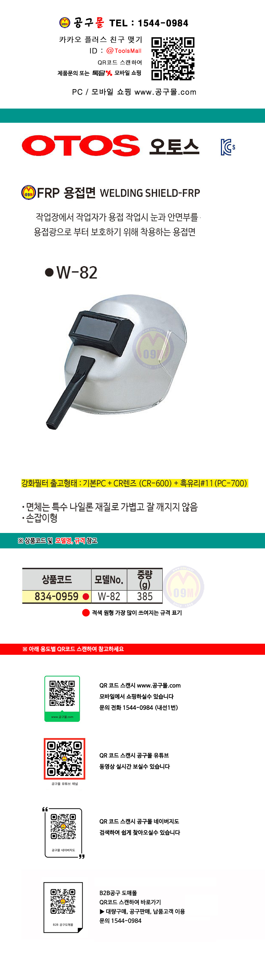오토스 자동용접면 W-81 (11) (OTOS) 용접면,자동면,수동면,834-0940