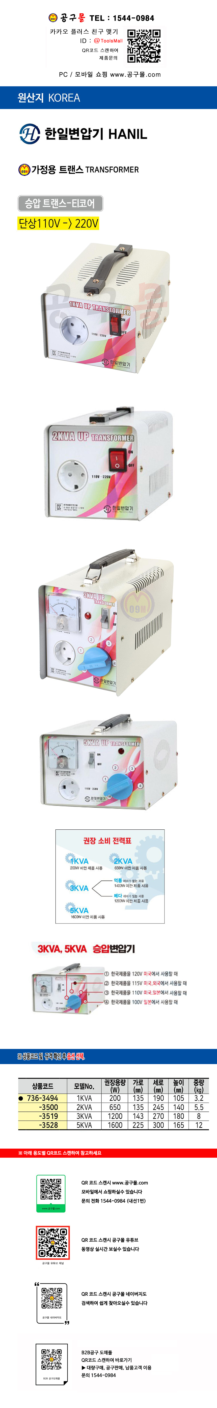 승압트랜스(110V->220V) 5KVAD 한일산업,공구몰,공구마켓,변압기