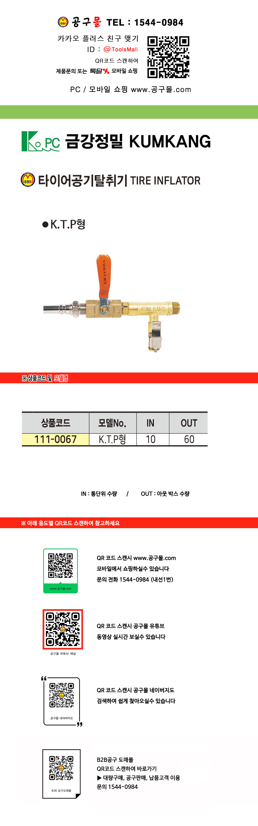 금강정밀 타이어공기 탈취기 K.T.P형 에어공구, 공구몰 111-0067