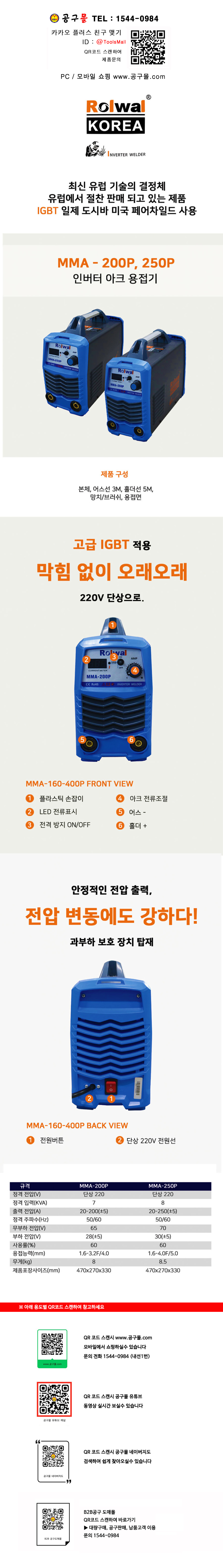 로웰코리아 인버터 아크용접기세트 MMA-250P 웰딩 공구몰, 725-9757