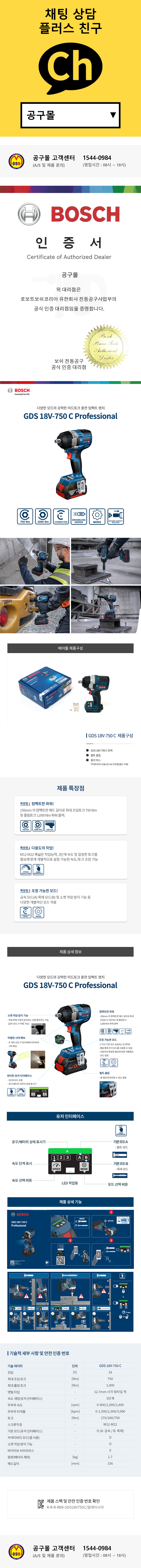 보쉬 충전임팩렌치 GDS18V-750 solo (18V-베어툴) 충전임팩 복스알