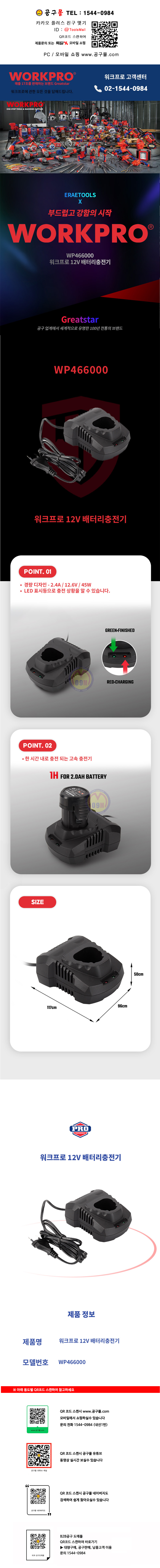워크프로 12V 충전기 2.0Ah WP466000 WORKPRO 공구몰