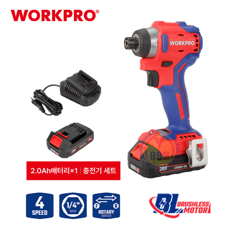 워크프로 20V 충전임팩드라이버세트 WP390103 4Ahx2개 1/4 2400rpm WORKPRO 공구몰