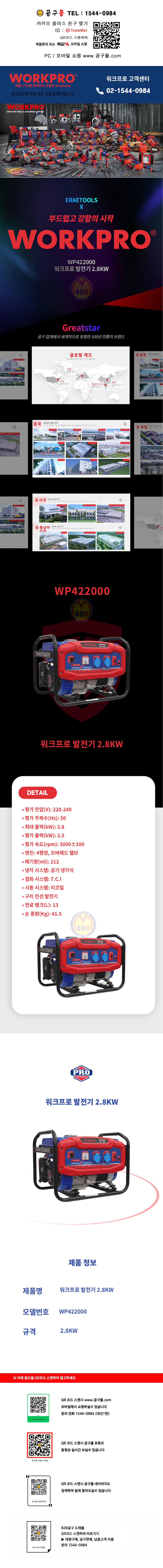 워크프로 발전기 2.8KW WP422000 WORKPRO 공구몰
