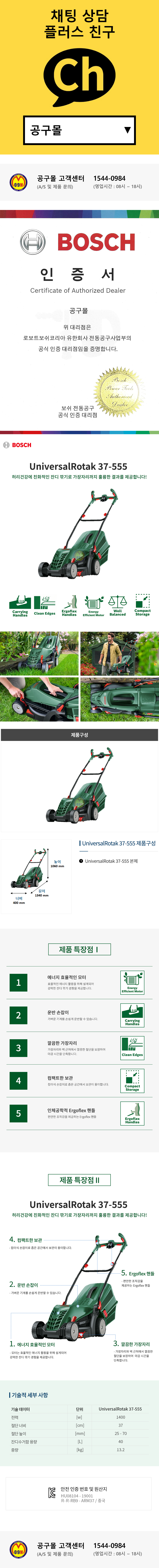 보쉬 유선 잔디깍기 UniversalRotak37 (ARM37대체품) 잔디깍기 제초기