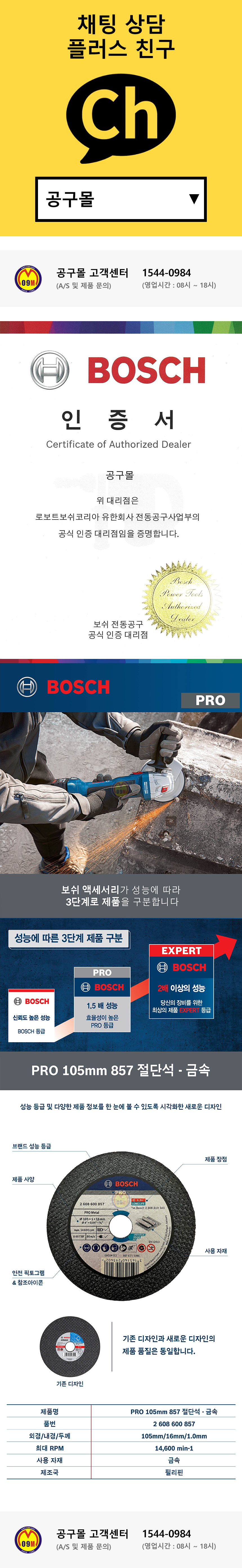 보쉬 105mm 그라인더 절단석 857 각파이프 철제 절단용