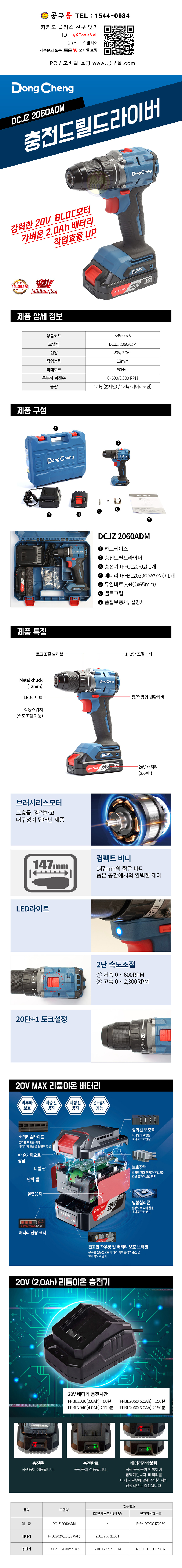 동청 충전드릴(BL) DCJZ2060ADM (20V 2.0Ah,1B) DongCheng 공구몰닷컴 585-0075