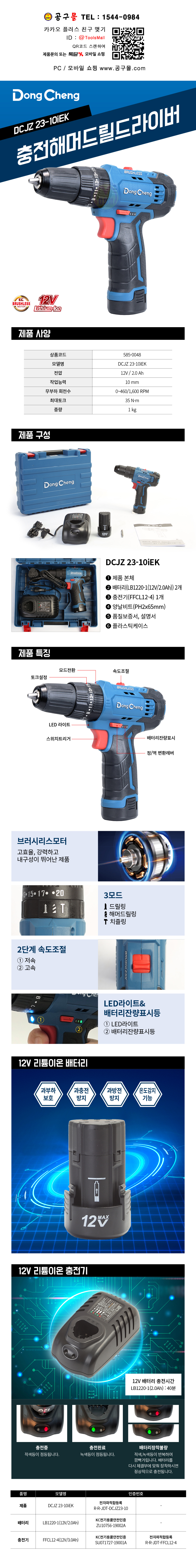 동청 충전해머드릴(BL) DCJZ23-10iEK (12V 2.0Ah,2B) DongCheng 공구몰닷컴 585-0048