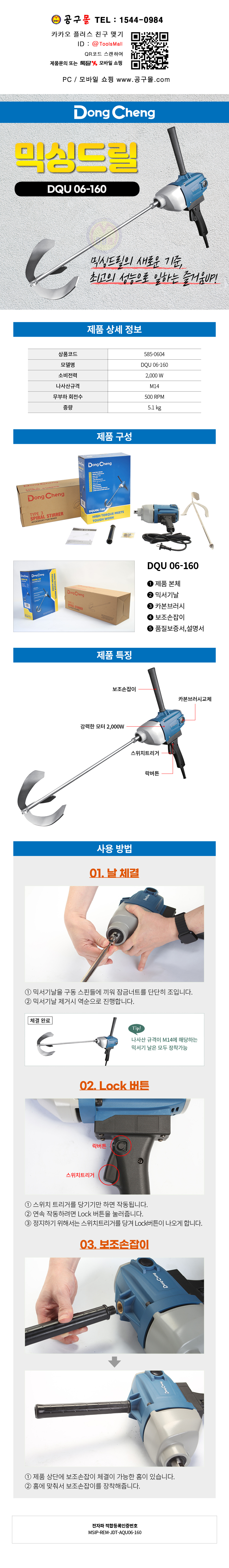 동청 믹싱드릴 DQU06-160 날포함, 2000W, 500RPM 믹서드릴, DongCheng 공구몰닷컴 585-0604