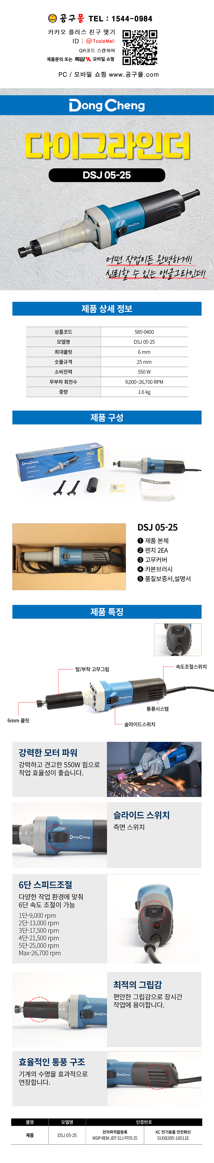 동청 다이그라인더 DSJ05-25 550W, 6mm RPM조절 DongCheng 공구몰닷컴 585-0400