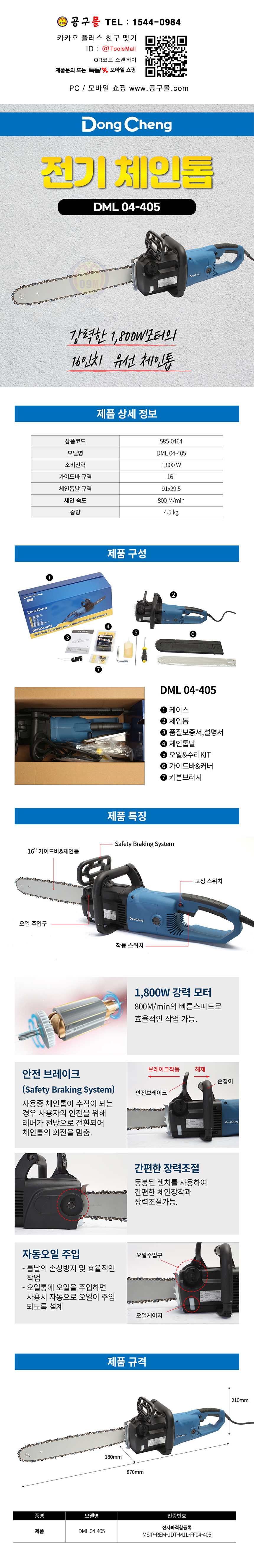 동청 전기체인톱 DML04-405 410mm(16) 1800W 톱날91x29.5 DongCheng 공구몰닷컴 585-0464