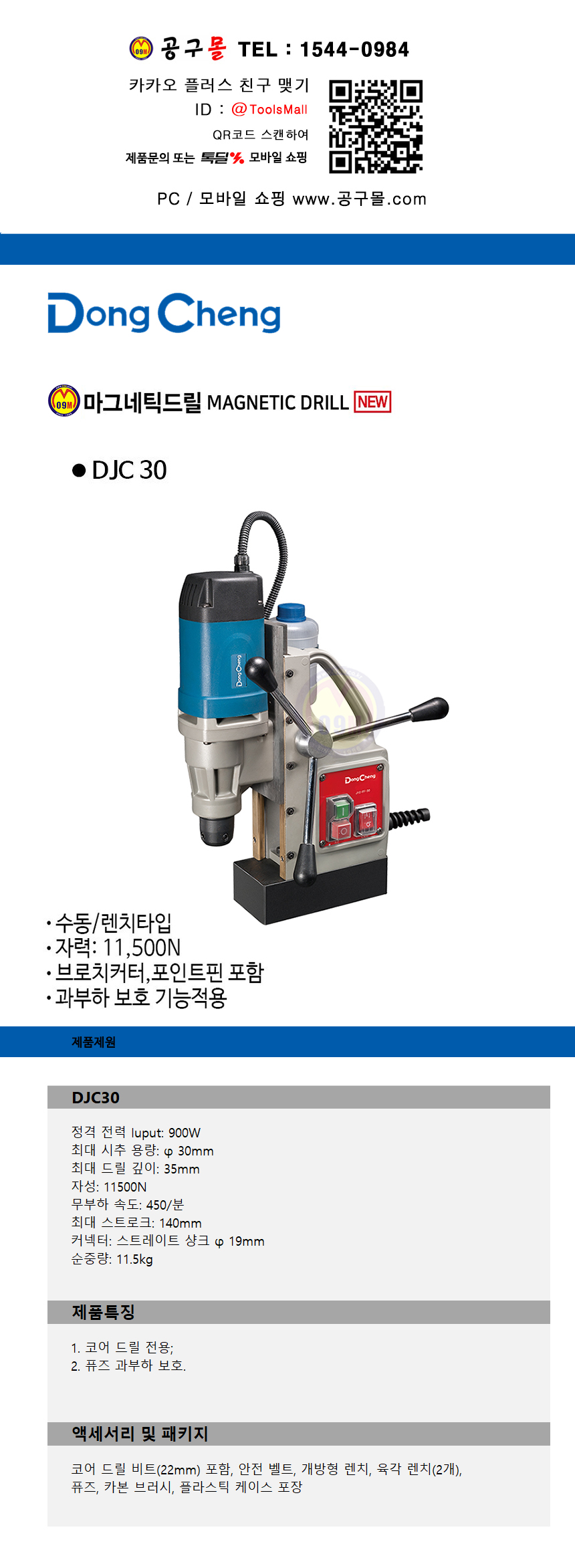 동청 마그네틱드릴 DJC30 홀커터 22mm 포함, DongCheng 공구몰닷컴 585-6088