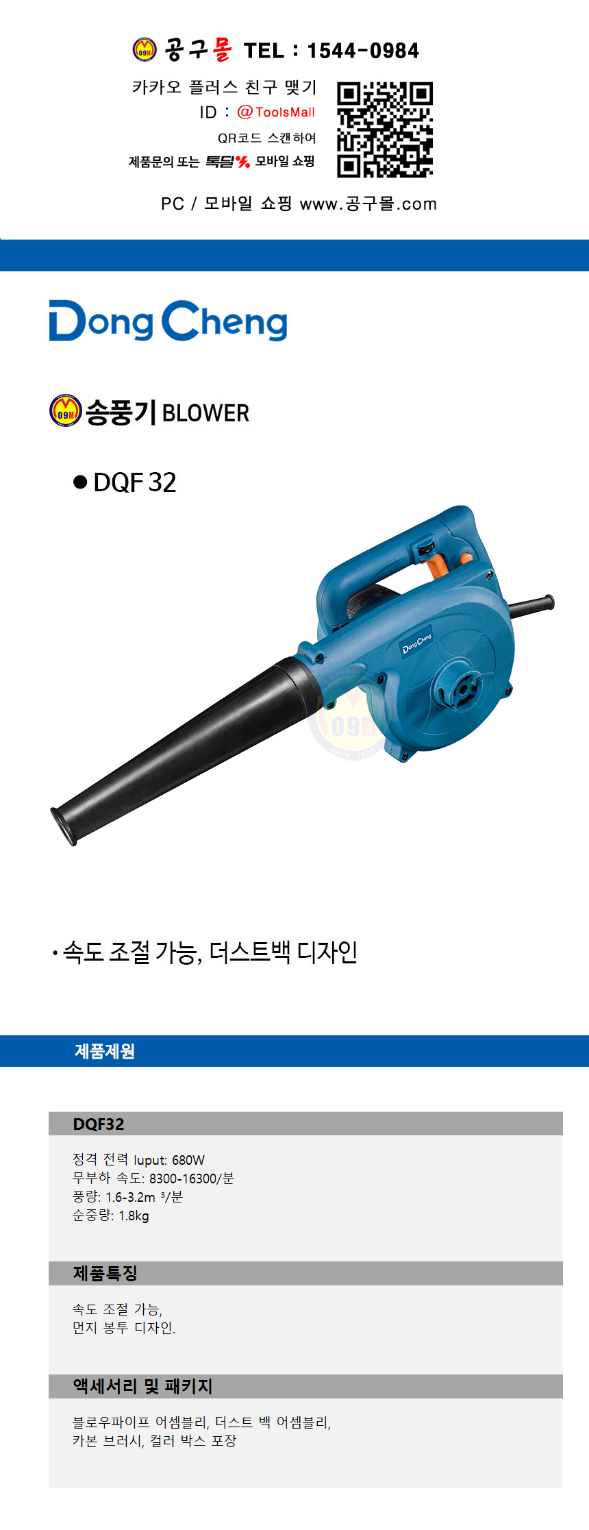 동청 송풍기 DQF32 풍량조절, 680W, 브로워, BLOWER, DongCheng 공구몰닷컴 585-0482