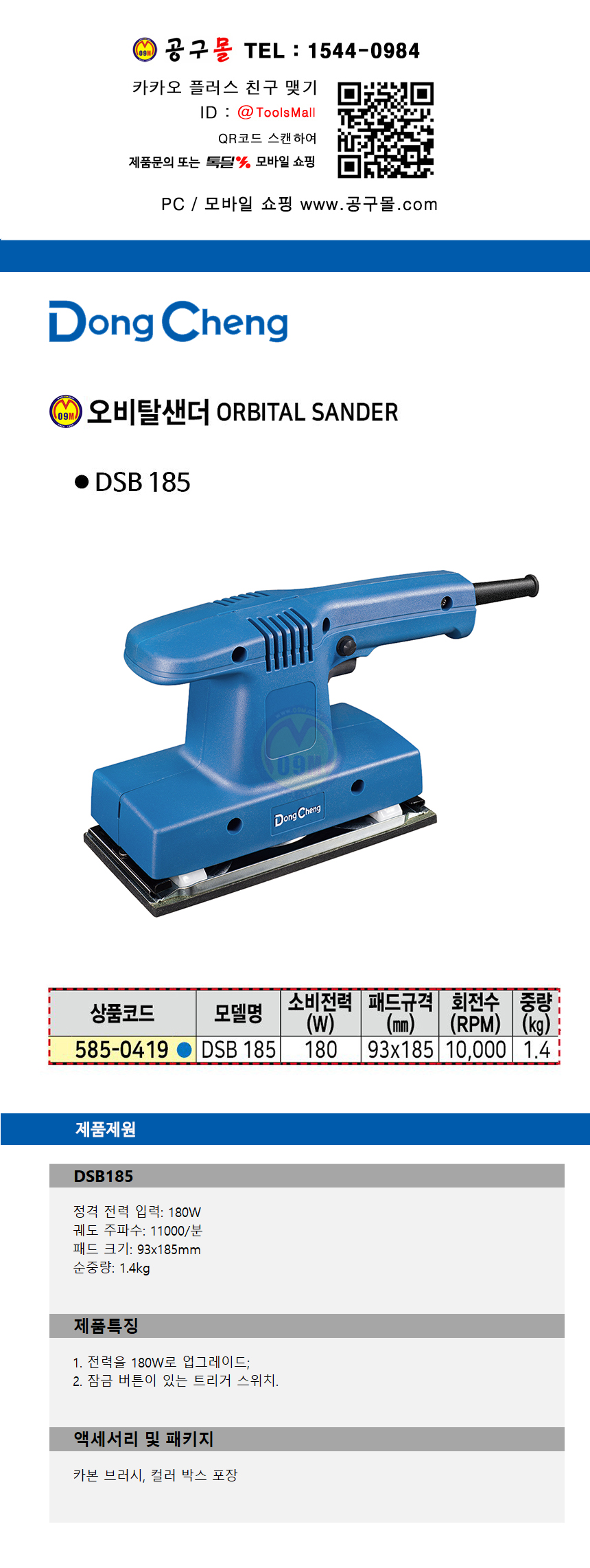 동청 오비탈샌더 DSB185 180W 93x185mm 사각샌더, DongCheng 공구몰닷컴 585-0419
