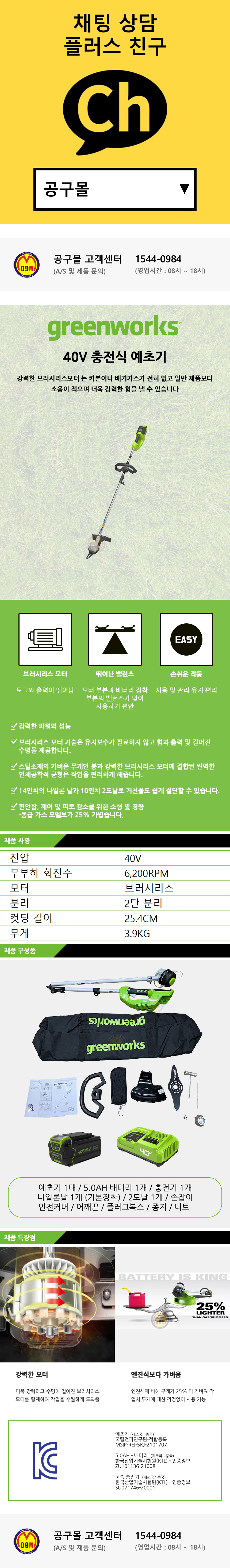 그린웍스 40V 충전예초기 (5.0AH 배터리 1개세트) 제초기 벌초용 예초용