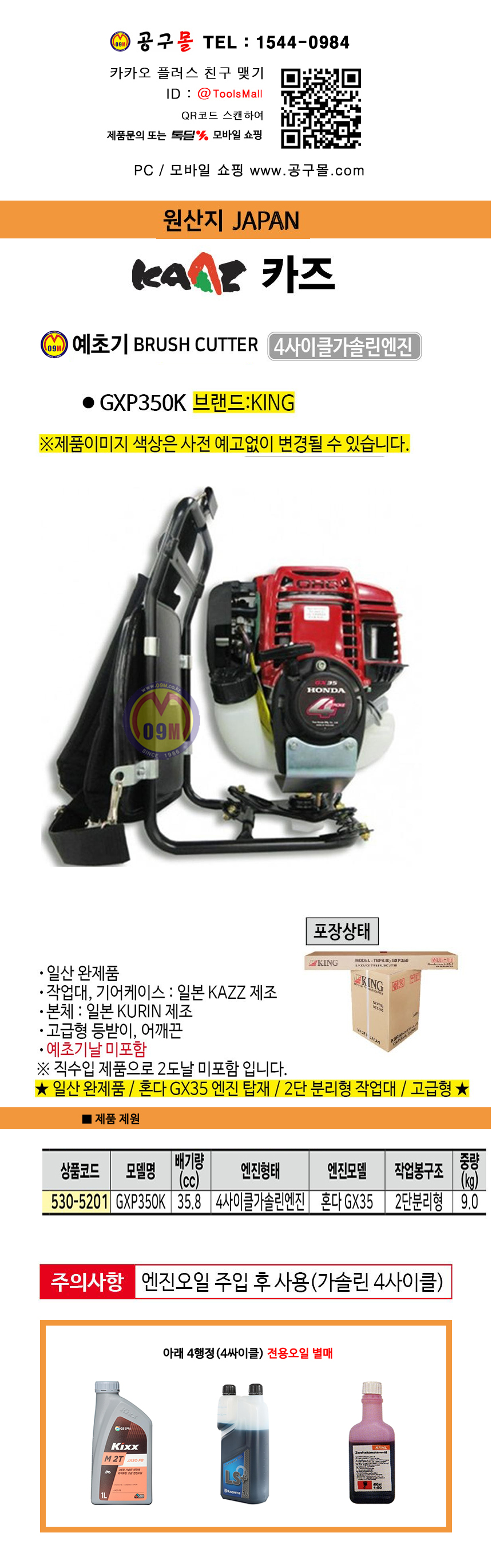 카즈 4행정 예초기(완제품) GXP350K (혼다GX-35) KAAZ 전문가용 제초기, 벌초기 530-5201