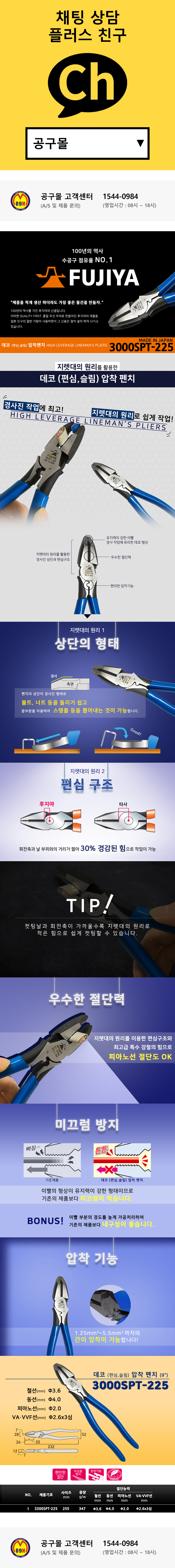 후지야 압착 뺀치 3000SPT-225 데카팬 전기 펜치