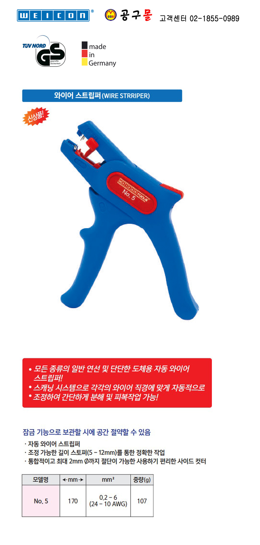 웨이콘 와이어 스트립퍼 NO5 51000005, WEICON,웨이콘,전기공구,통신공구