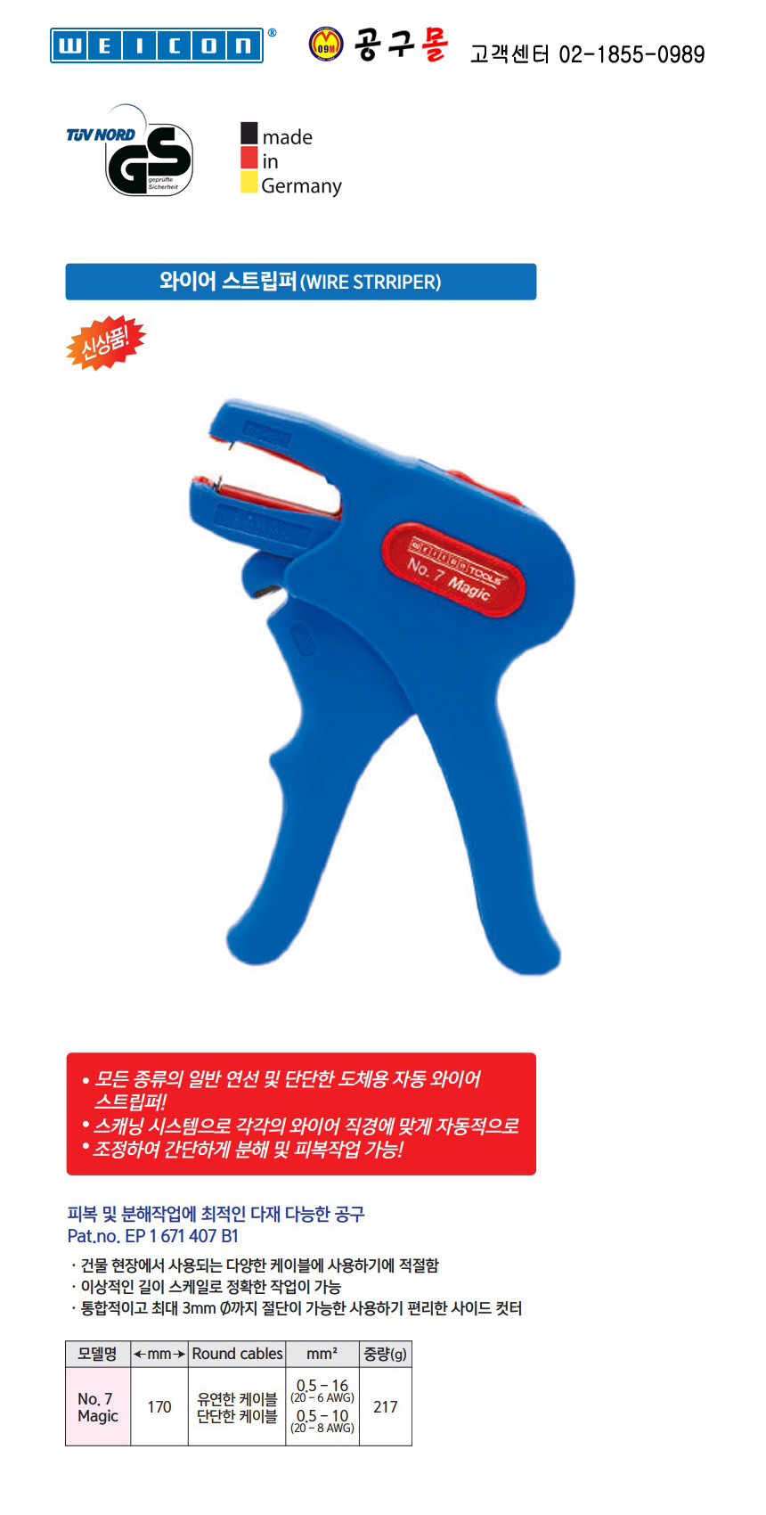 웨이콘 와이어 스트립퍼 NO7 Magic 51000007, WEICON,웨이콘,전기공구,통신공구