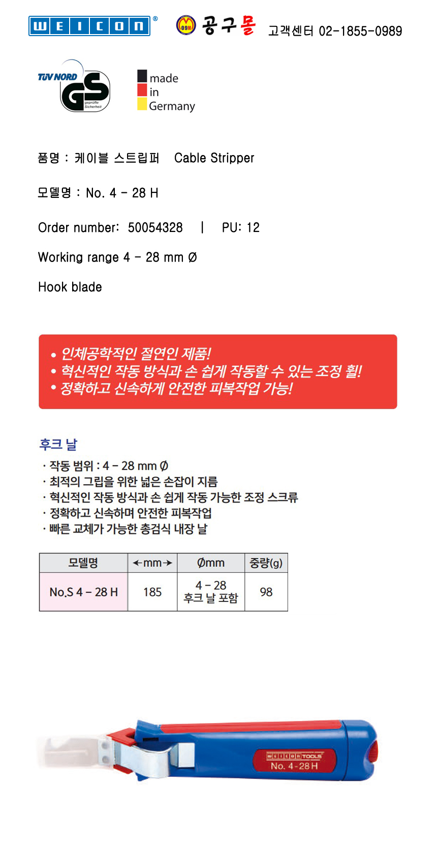 웨이콘 케이블 스트립퍼 NO4-28H 50054328, WEICON,웨이콘,전기공구,통신공구