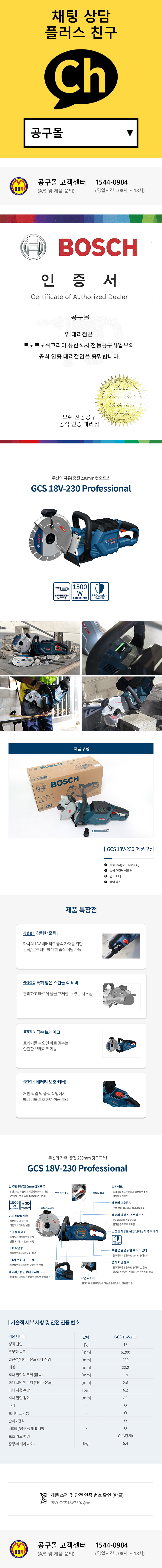 보쉬 충전콘크리트절단기 GCS18V-230 (18V-베어툴) 콘크리트 건습식
