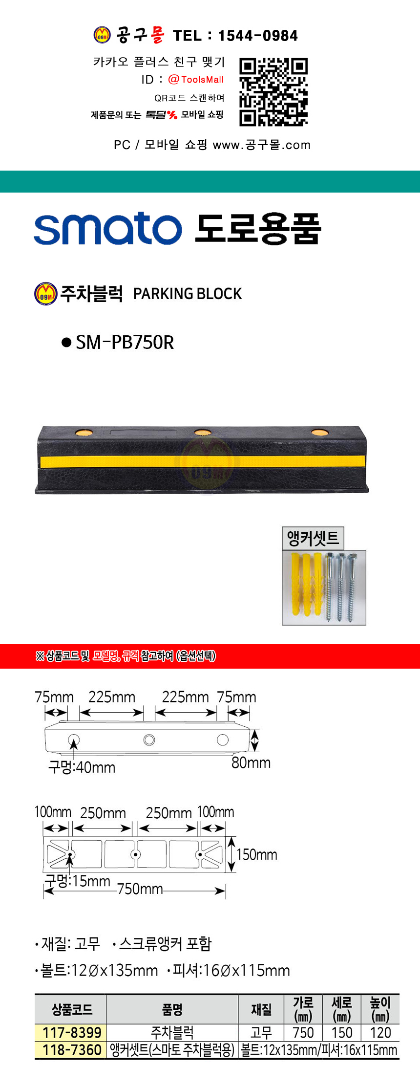 스마토 주차블럭 SM-PB750R (피스포함) smato 안전용품 주차장블럭 117-8399